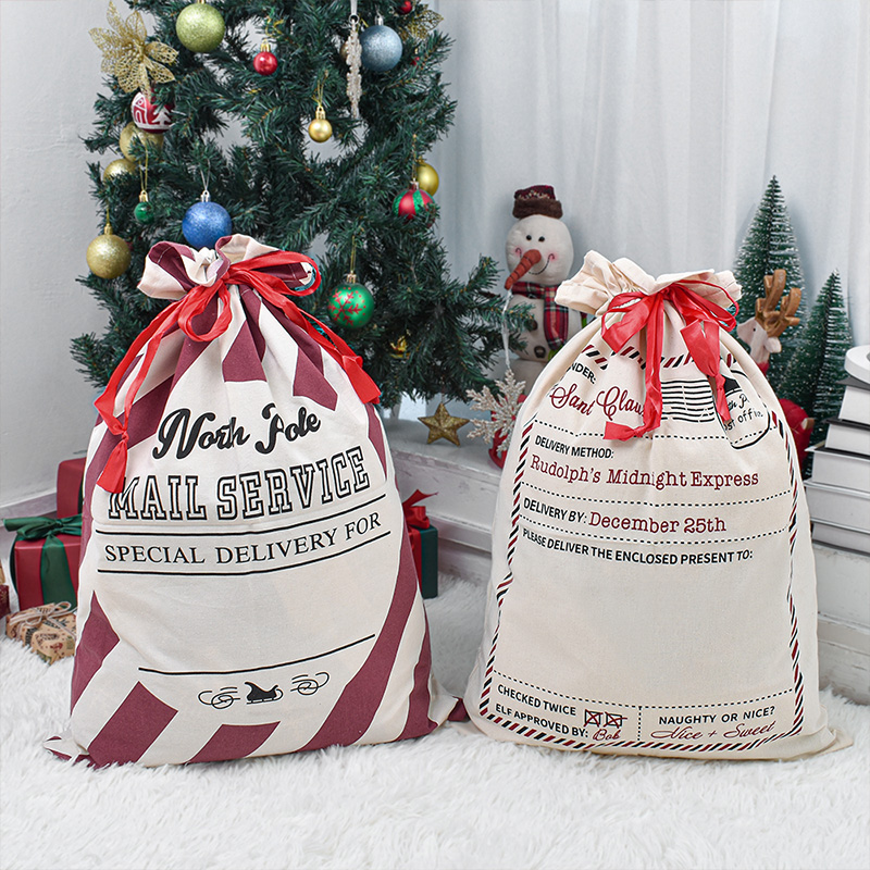 Sacs fourre-tout écologiques à cordon de serrage pour Noël